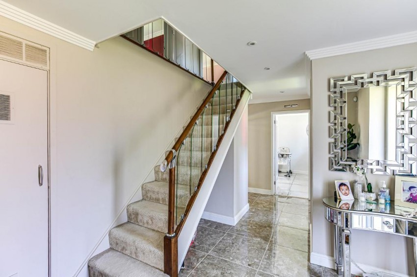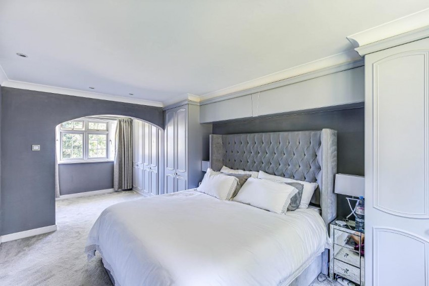Set on the popular Selsdon Ridge Development is this attractive and beautifully presented double fronted detached georgian style home. The property has undergone improvements and complete re-decoration by the current owners to include a re-fitted kitchen/breakfast room and modern bathroom suites. From the moment you enter this lovely home you will feel the bright and airy space on offer with the entrance hall enjoying tiled flooring and staircase to first floor with glass balustrade. The lounge is a large double aspect room with doors opening to the rear garden and double doors connecting with the spacious dining room which again overlooks the rear garden. There is a ground floor cloakroom and finally a re modelled fitted kitchen to include integrated appliances and space for breakfast table. To the first floor off the spacious landing are the 5 bedrooms with the master suite enjoying a dressing area to include a range of fitted wardrobes and access to a lovely large en-suite bathroom which has been re-fitted. The 4 further bedrooms all have fitted wardrobes. The family bathroom is again a fresh, modern room with white suite. Externally the garden is of a great size and is mainly laid to lawn sheilded by mature hedging to the borders providing immense privacy. There is a large paved patio and access to both sides of the property. To the front is a wide driveway providing off street parking for 2/3 cars.