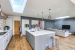 On the ground floor is a welcoming entrance hall with underfloor heating, useful large built in storage cupboard and a cloakroom with wc. Without doubt the main feature of this outstanding home is the open plan kitchen / family room which enjoys an abundance of light from the bi fold doors that overlooks the garden and the two large sky lights. The kitchen area is superb with a central island and door to a useful separate utility room along with access into a dining area, also with bi fold doors and garden aspect. This entire area also benefits from underfloor heating. The ground floor accommodation continues to impress and features a great 11 x 10 home gym room, trending home office / study and a separate lounge to the front.
